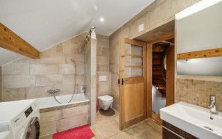 À l’étage, trois chambres, une salle de bain et une buanderie offrent un espace fonctionnel pour toute la famille.