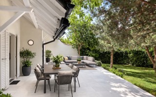 La villa bénéficie de prestations techniques haut de gamme, avec des panneaux solaires intégrés pour une efficacité énergétique optimale et un chauffage au sol assurant un confort thermique doux et homogène.