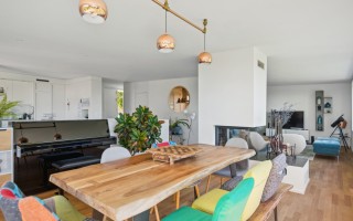 Dès les premiers pas, le regard est captivé par le parquet noble, dont les tons chaleureux subliment des volumes généreux baignés de lumière. Les espaces de réception se prolongent naturellement vers deux terrasses spacieuses, véritables havres de convivialité et d’intimité, offrant une transition harmonieuse entre intérieur et extérieur.