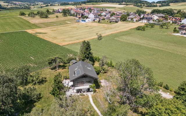 Située dans un environnement champêtre d’une grande tranquillité, cette superbe villa de 7.5 pièces (env. 265 m² habitables) construite en 2020 bénéficie d’une situation privilégiée à Burtigny, à seulement 10 minutes de Gland et des accès autoroutiers. Offrant luminosité, modernité et confort, elle propose de généreux volumes répartis sur quatre niveaux, incluant 6 chambres, une suite parentale avec poêle suédois, ainsi qu’un espace polyvalent au sous-sol.