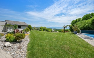 Jouissant d'une situation en pleine campagne, cette propriété est idéale pour y voir grandir vos enfants dans un environnement paisible et verdoyant. Essentiellement entourée de zones agricoles, vous bénéficierez d'un calme absolu. La situation dominante du terrain permet de contempler une belle vue sur le lac Léman et les Alpes.