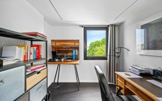 L’espace nuit principalement installé au 1er étage propose 4 chambres à coucher dont une en suite parentale avec salle de bains et dressing. En vrai maison de famille, chaque chambre à coucher bénéfice d’un dressing. Pour une vie pratique, la buanderie a été installée à ce niveau, proposant également beaucoup de rangements. Un bureau avec dressing et une 2ème salle de bains complètent ce niveau.