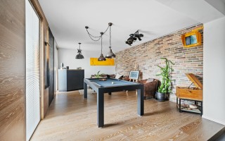 Les pièces de vies au rez-de-chaussée sont spacieuses et modulables selon vos envies. Ces pièces sont idéales pour y recevoir vos convives ou partager des moments en famille tout en ayant le privilège de profiter de la vue sur le lac, sur le jardin ou encore sur la piscine et la terrasse couverte. La cuisine est entièrement équipée et ouverte sur la salle à manger. L’étage du rez-de-chaussée offre d’autres avantages non négligeables, comme un salon TV, une salle de jeux, une chambre à coucher et une salle de douche.