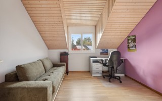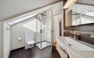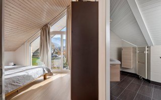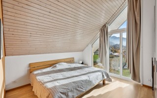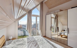 Les combles abritent quant à eux 2 chambres à coucher, 1 parentale avec salle de douche attenante, 1 salle de bains. Depuis cet étage, vous pourrez profiter d'un joli dégagement sur le lac ainsi que sur les montagnes environnantes. 3 places de parc extérieures dont une devant le garage complètent ce bien.