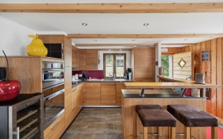 Ce chalet situé aux Crettaux, construit en 1980 a été entièrement rénové avec goût et agrandi. Il dispose d'une grande cuisine ouverte avec bar moderne et d'un séjour/salle à manger avec des grandes baies vitrées offrant une grande luminosité. Ce grand espace à vivre très lumineux offre un accès sur une belle terrasse en pierre naturelle offrant une vue spectaculaire sur la plaine du Rhône.